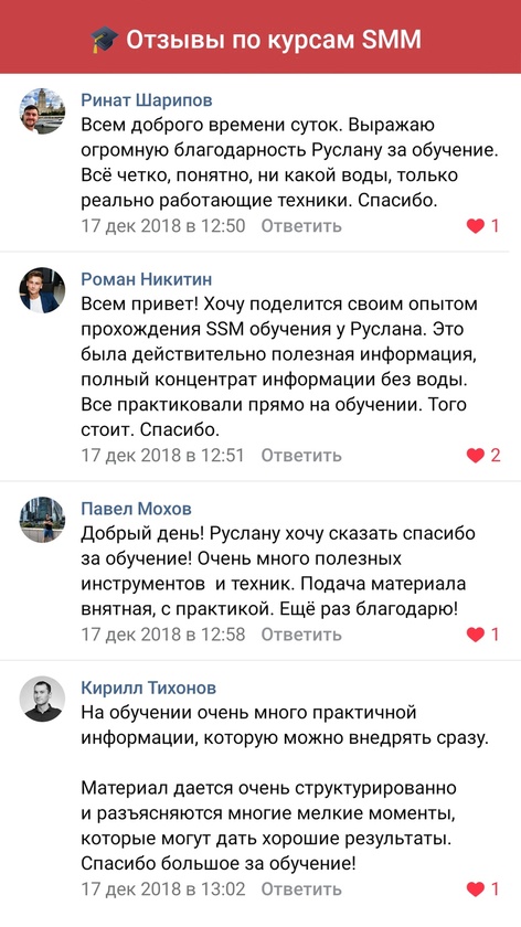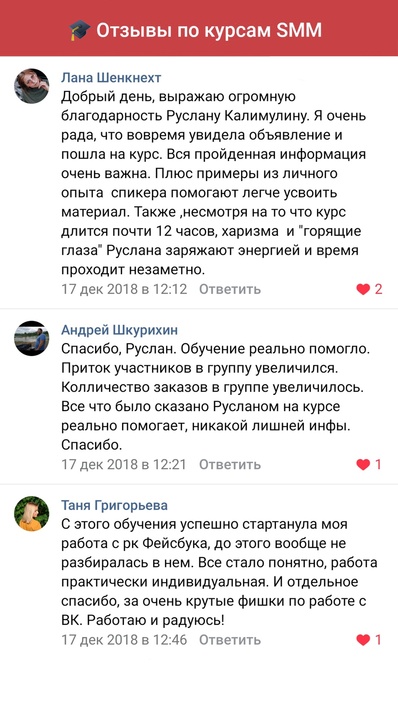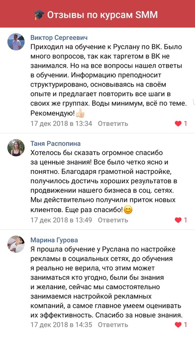 Мы гордимся своим курсом и тем, что он помогает продавать в соцсети ВК. Мы не учим, как писать посты, мы рассказываем как сделать так, чтобы у вас купили.