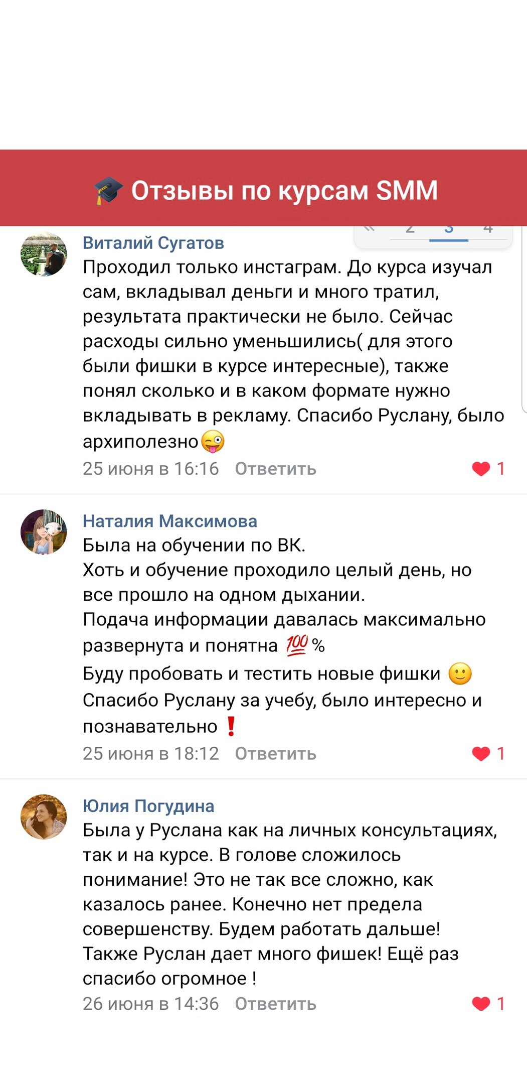 Отзывы по курсу