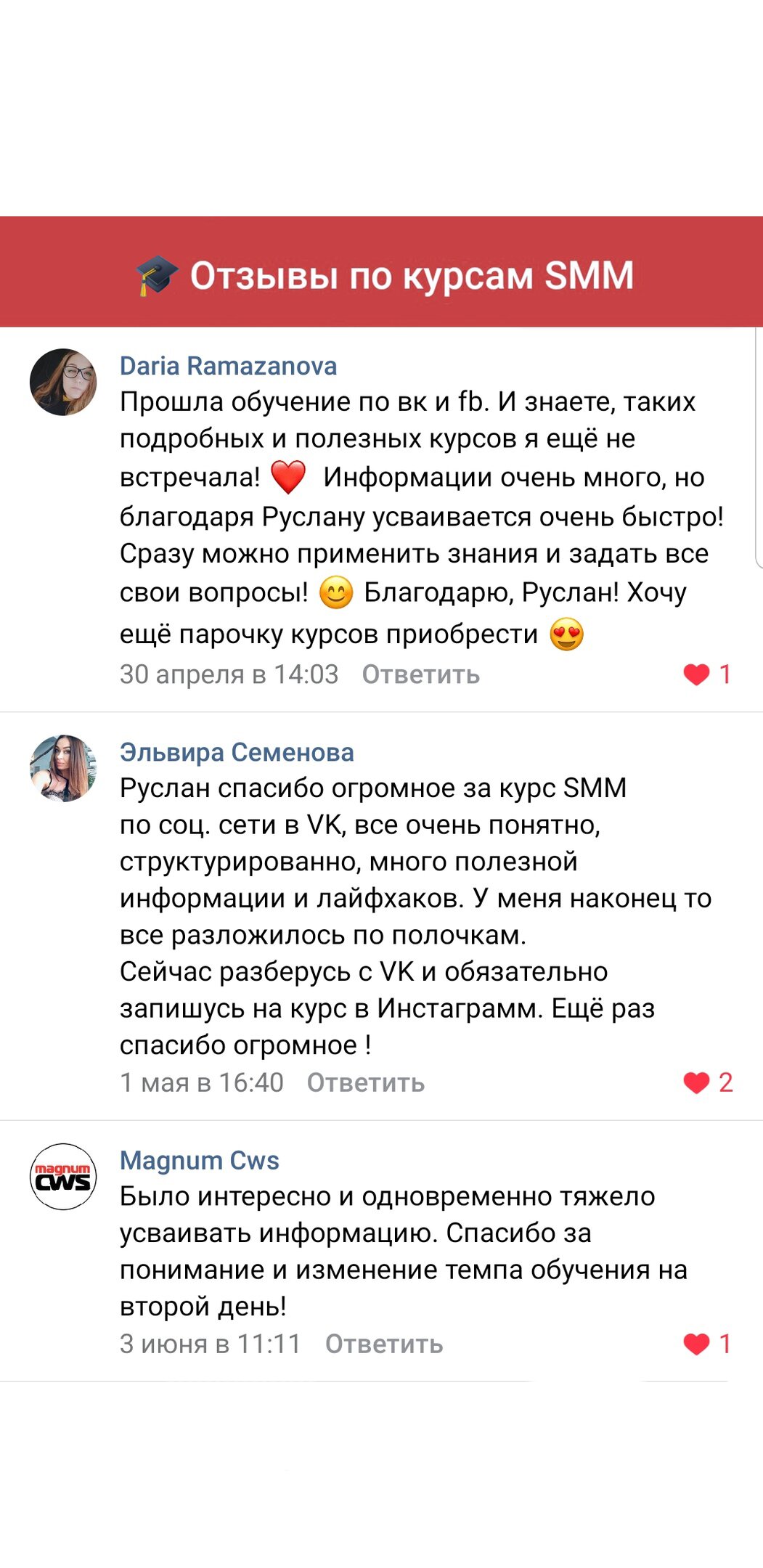 Отзывы тех, кто прошёл обучение